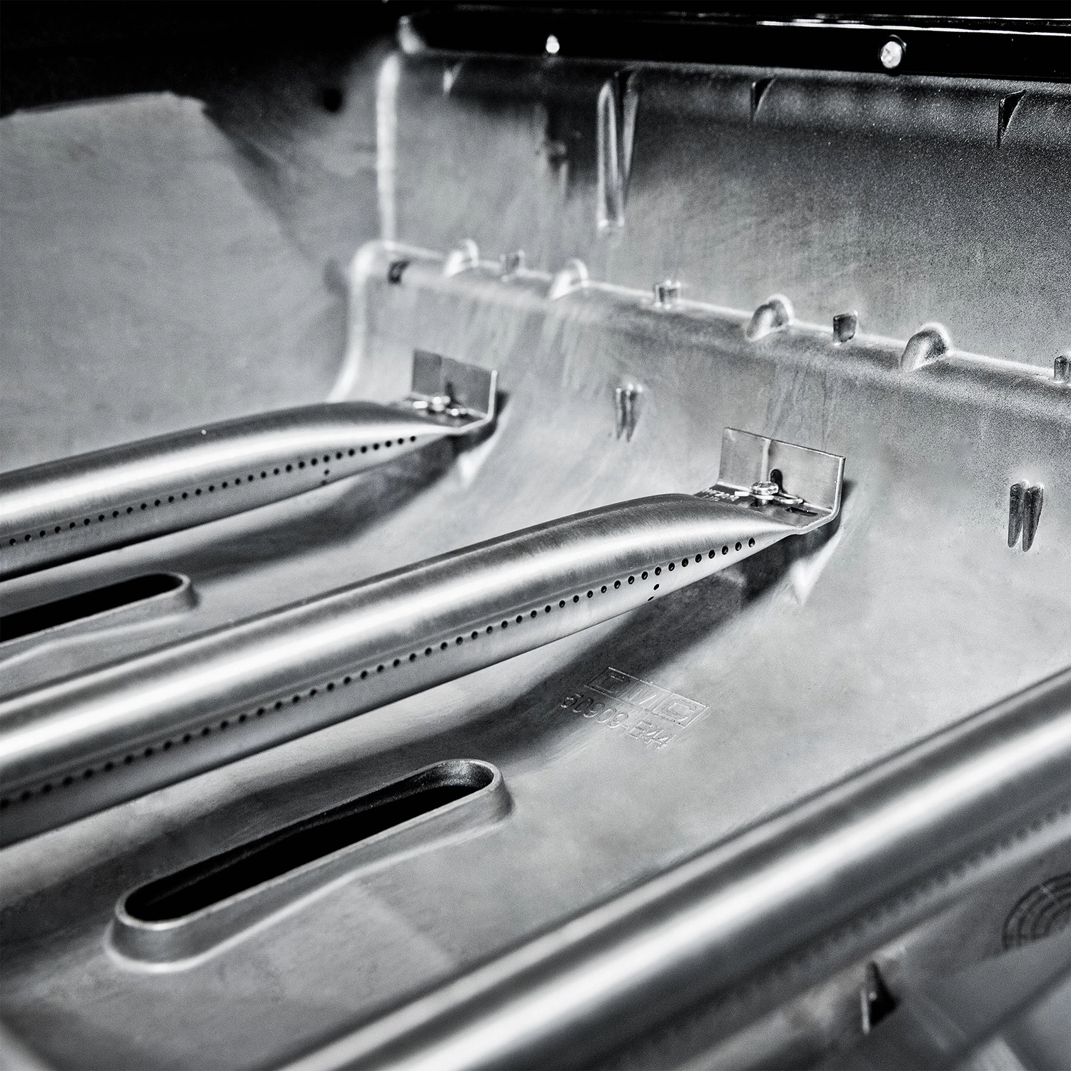Die leistungsstarken Dual Tube Edelstahlbrenner mit jeweils 3,0 kW sind in einer hochwertigen Therma Cast Aluminiumguss Brennerwanne verbaut. Das Zusammenspiel der Dual Tube Brenner in Verbindung mit der geschlossenen Alugusswanne bietet besonders hohe Temperaturen und eine ideale Hitzeverteilung.