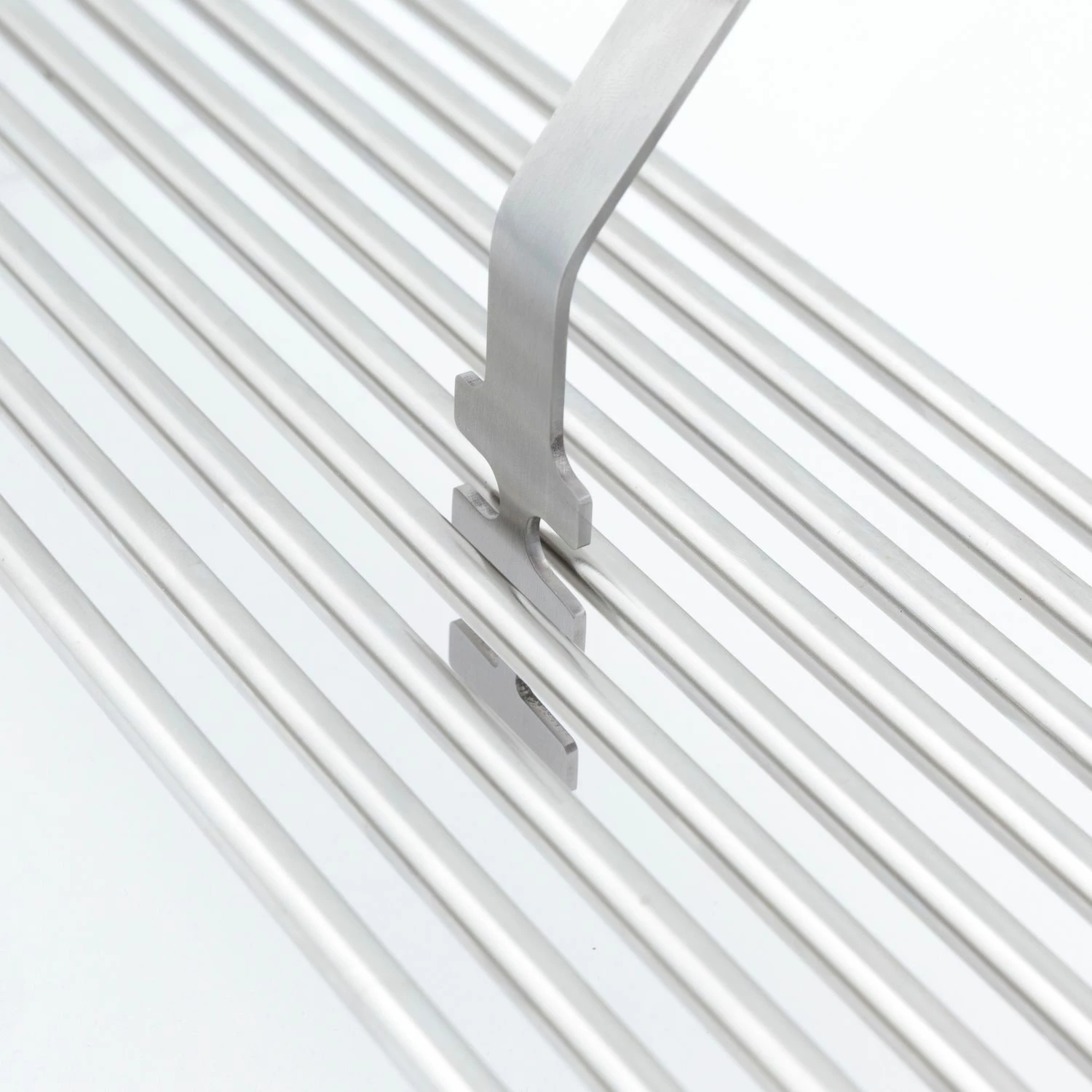 Der Broil King Grillrost Lifter ist ein sehr nützliches Werkzeug für den Umgang mit den neuen Broil King Narrow Einsätzen und ist auch speziell für diesen Einsatz konzipiert. Er erleichtert das Entfernen, Tauschen oder Umplatzieren der Einsätze enorm, kann aber auch mit anderen Grillrosten benutzt werden.