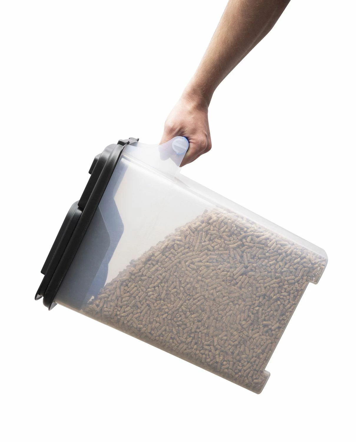 Die Lagerung der Pellets in der luftdicht verschließbaren Kunststoffbox, hält sie trocken und optimal vor Verunreinigungen geschützt.