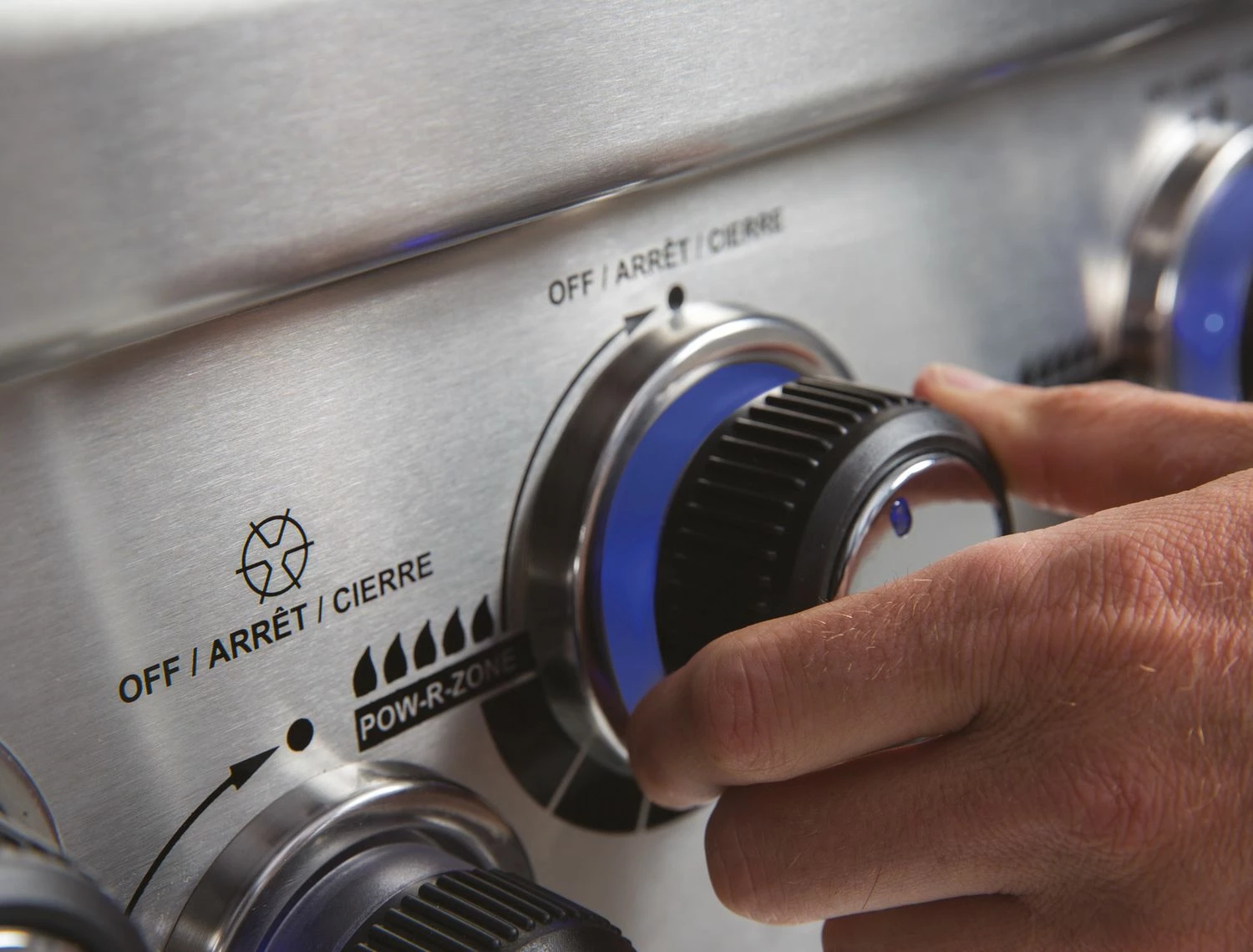 Ein sehr schönes Detail sind die beleuchteten Drehregler der Brennerventile. Mit ihnen können Sie bei Dämmerung die Brenner ohne externe Lichtquelle regeln.