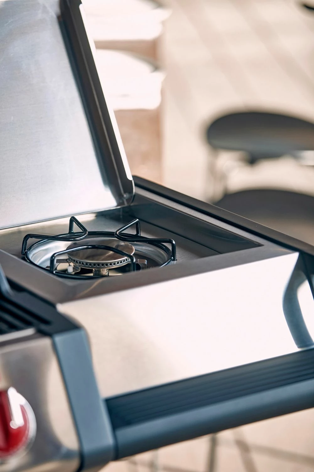 Vervollständigt werden die Vielfältigen Zubereitungsmöglichkeiten mit einem praktischen Seitenkocher . Der klassische Seitenkocher mit Ringbrenner bietet die Möglichkeit Beilagen, Saucen, Suppen, Eintöpfe oder Pfannengerichte komfortabel zuzubereiten, ohne dabei die Grillfläche in Anspruch nehmen zu müssen.