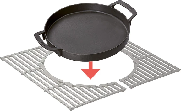 Mit dem genialen SWITCH GRID™ System verwandeln sie ihren Enders Gasgrill in eine vielseitige Allzweckwaffe. Die Basis bildet der SWITCH GRID™ Gusseisenrost mit einer runden Aussparung, in der sich verschiedene Einsätze ganz nach Belieben platzieren lassen – wie zum Beispiel die praktische Gusseisen Pfanne. Damit bereiten sie leckere Pfannengerichte einfach und komfortabel auf ihrem Enders Grill zu.