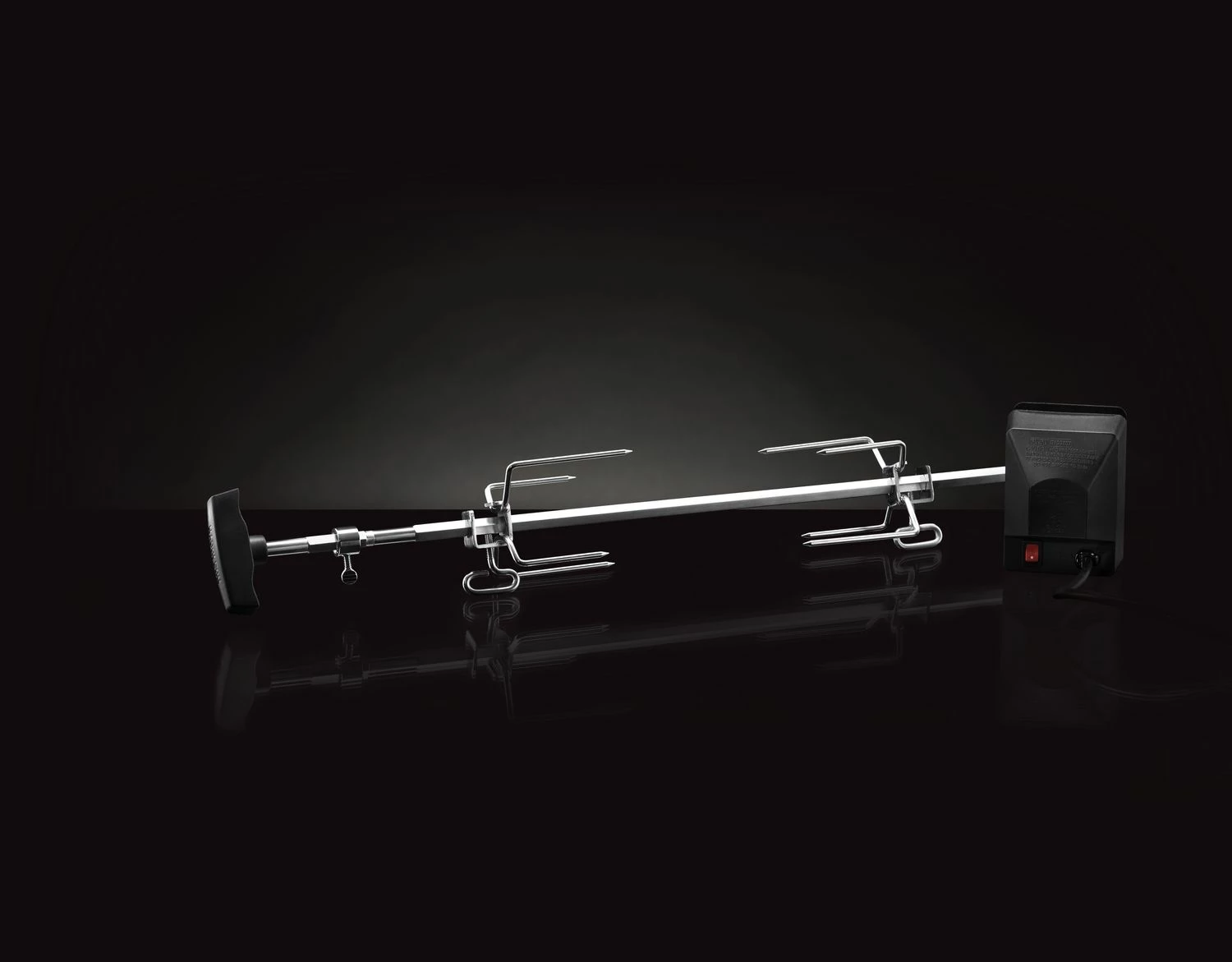 Der Drehspieß und beide Forken sind aus hochwertigem Edelstahl gefertigt und bieten die besten Voraussetzungen zum optimalen Bestücken des Spießes. Mit dem leistungsstarken Motor kommt die Rotisserie mühelos auch mit einer großen Menge an Grillgut zurecht und schafft locker sogar die Weihnachtsgans.