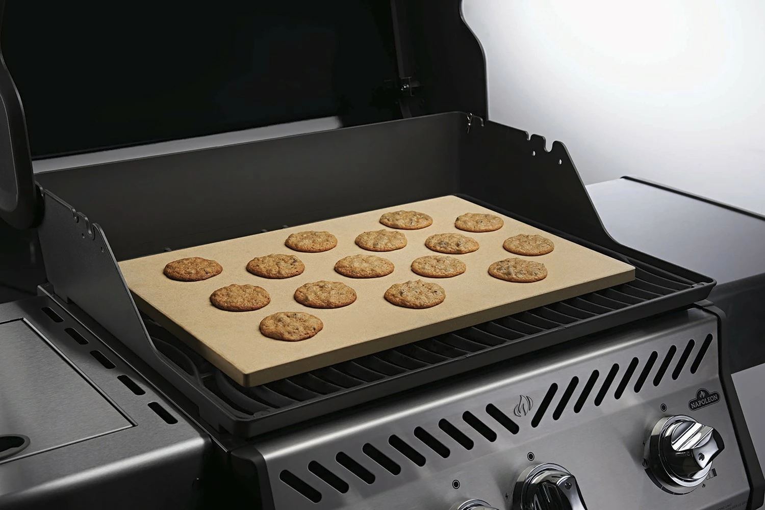 Wer eine knusprige Pizza auf dem Grill zubereiten möchte, kommt an einem Pizzastein nicht vorbei. Mit dem rechteckigen Pizzastein von Napoleon machen Sie aus Ihrem Gasgrill einen tollen Pizzaofen.