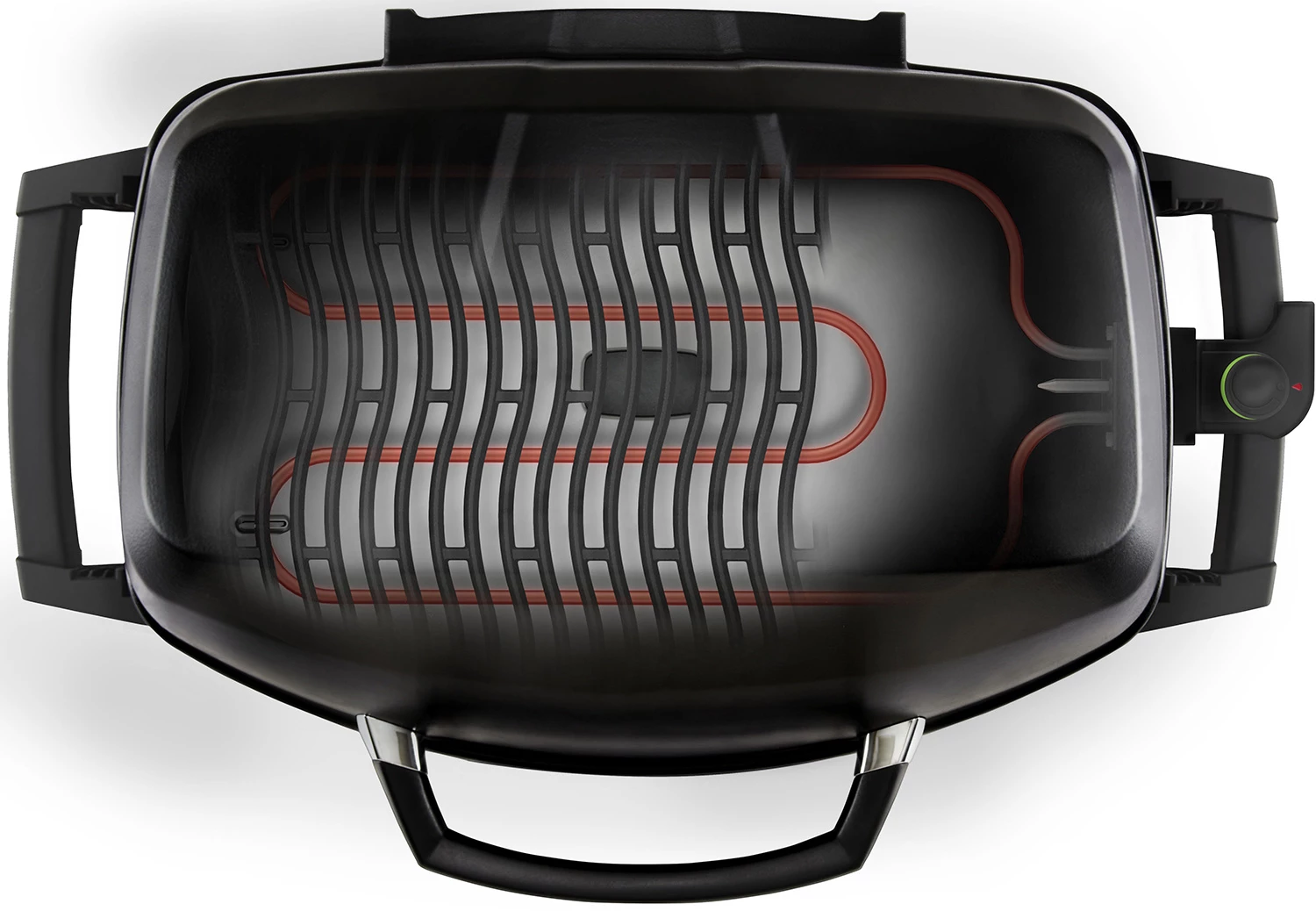 Der Heizstab des PRO285E ist für eine gleichmäßige Hitzeverteilung auf dem Rost mehrreihig in der Grillwanne verlegt. Mit einer Gesamtleistung von 2200 Watt bietet er genug Reserven, um das Grillgut scharf anbraten zu können.