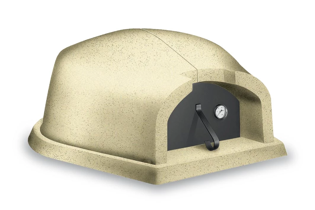 Verschlossen wird der Pizzaofen mit einer massiven Stahltür, die mit einem Thermometer zur Temperaturkontrolle ausgestattet ist.