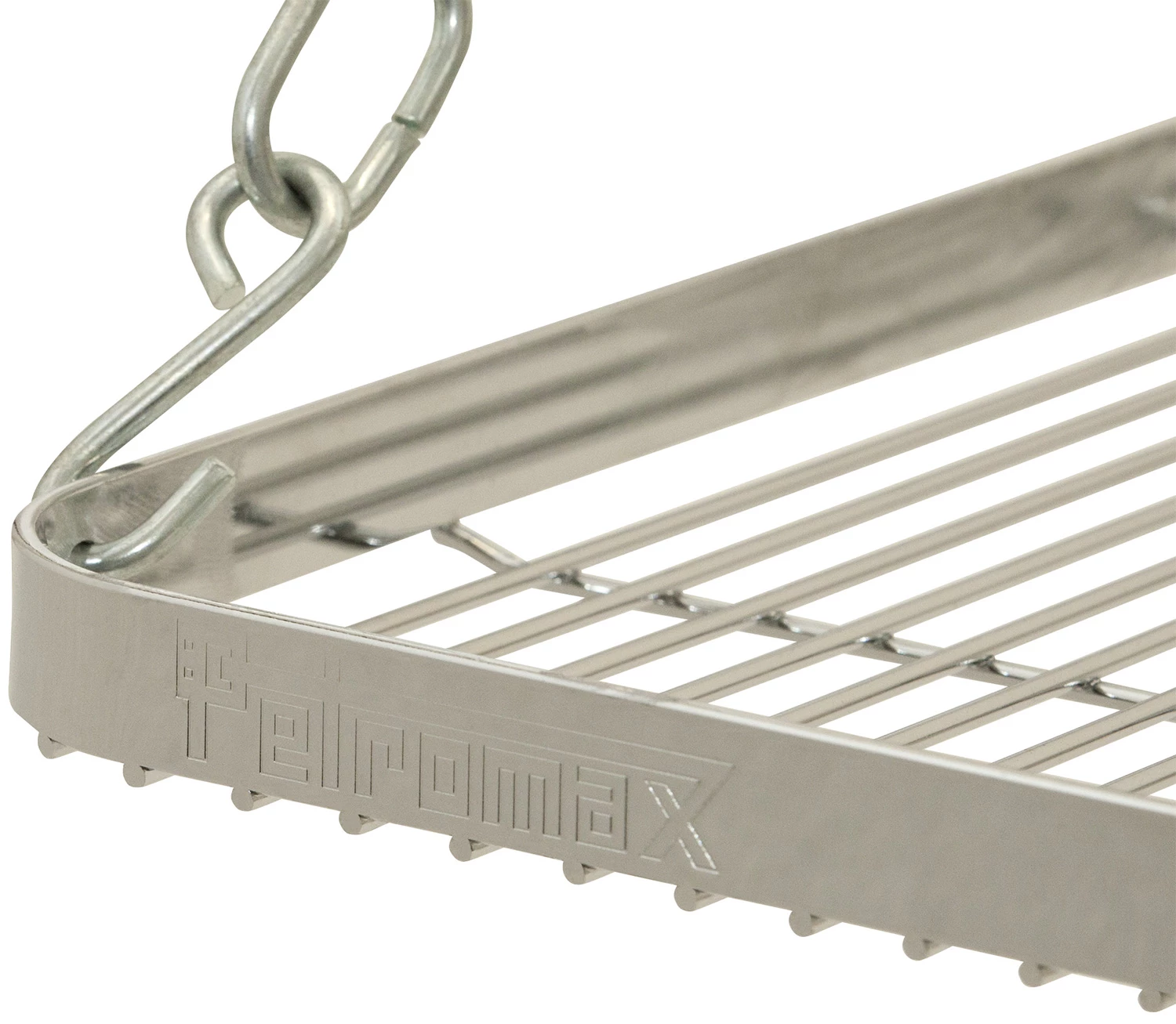 Ebenfalls im Lieferumfang enthalten ist ein 39 x 39 cm großer Grillrost aus verchromten Stahl. Dieser wird an zwei individuelle höhenverstellbaren Ketten befestigt. Ein umlaufender, erhöhter Rand sorgt dafür, dass das Grillgut nicht herunterrutschen kann.